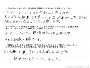 N0038 20201030 兵庫県立尼崎高等学校よりインターンシップを受け入れました。19 - 真空チャンバー,真空配管,溶接,機械加工のステンレスジョイント株式会社